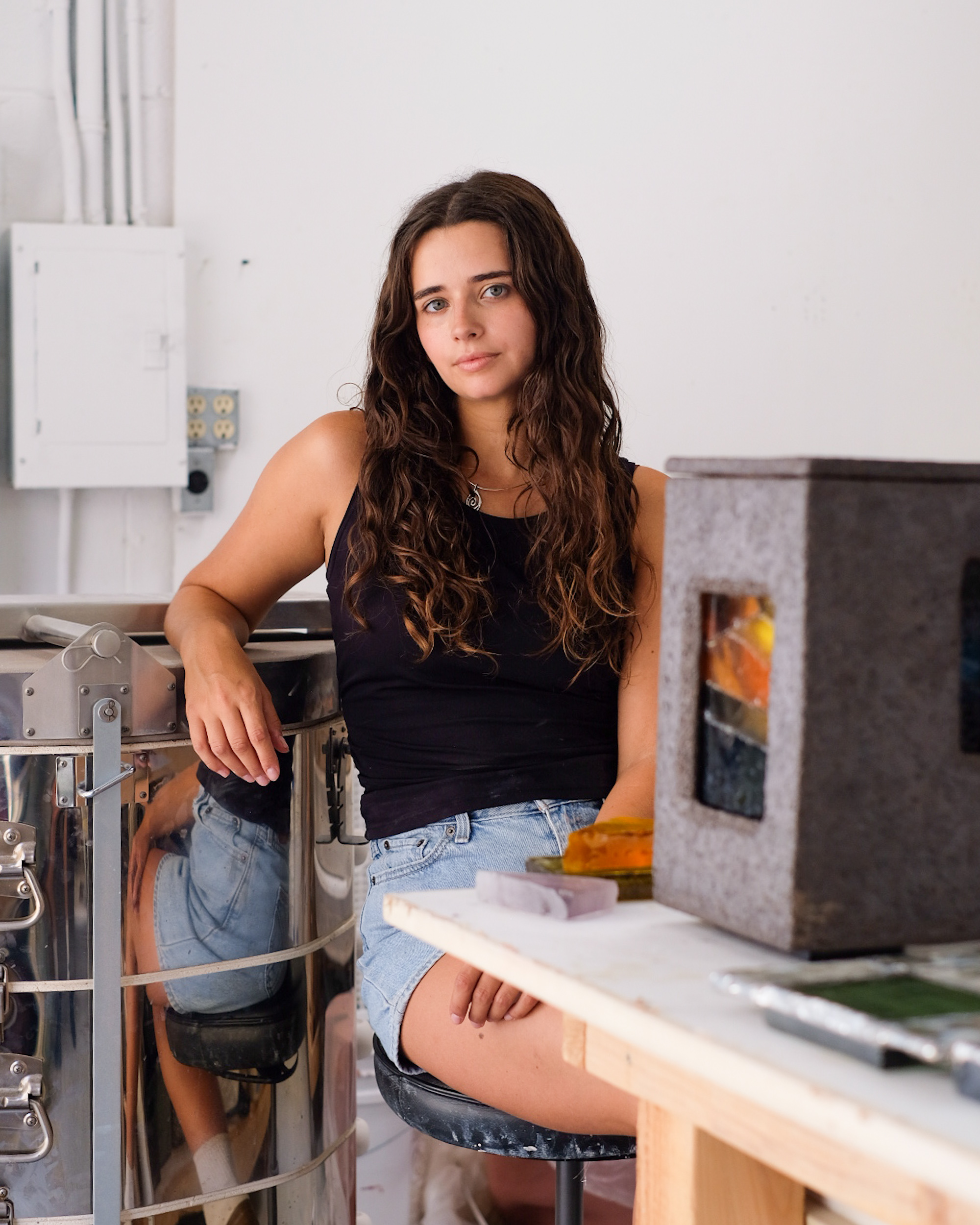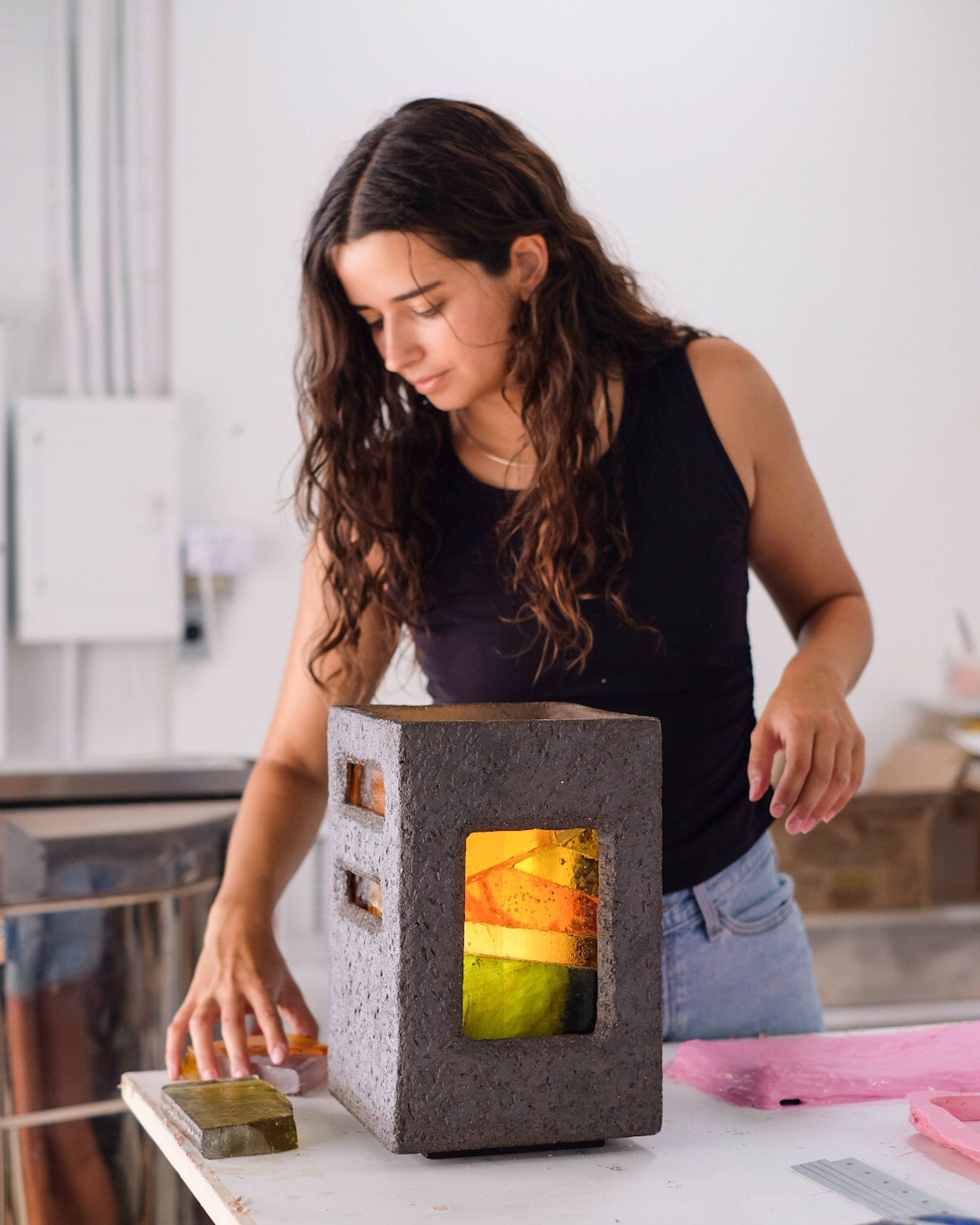 Emma Sher is an Los-Angeles based ceramicist and a 2021 UCLA graduate. The current objective of her work comes from a curiosity about the human desire to make sense of the world around us through spirituality, religion, and alternate ways of knowing. Through ceramic form with the incorporation of lighting, textiles, and glass, her work explores symbolism, spirituality, and play.